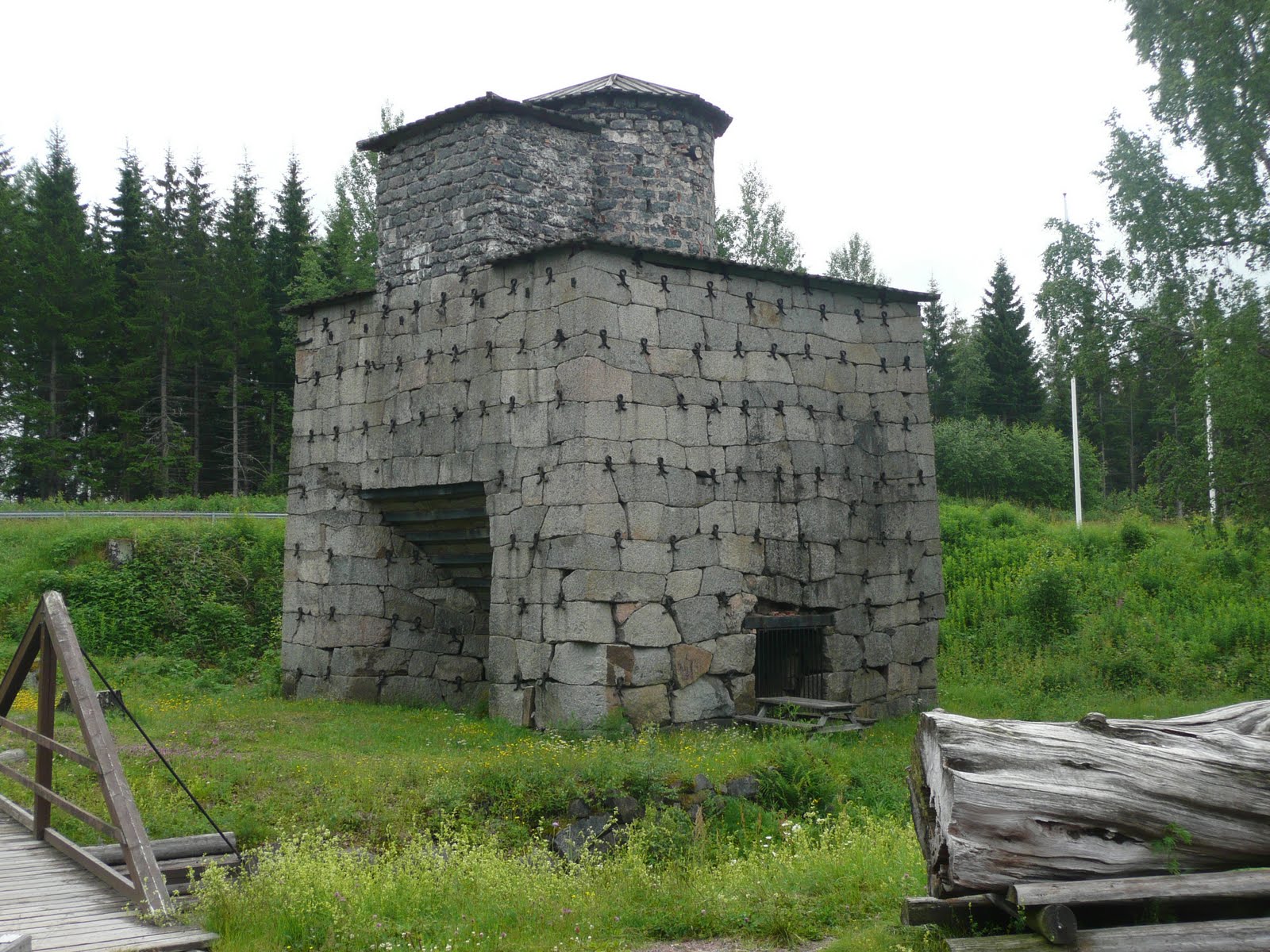 It was tempting to stay longer in our chalet, but Vansbro beckoned and it promised to be a shorter and less arduous day than the preceding one. Or maybe not! We footled along happily until coffee time. Alan stopped (cos he is always in front) at very strange looking building, beside which was a museum and a café. We decided to give the museum a miss but not the café.