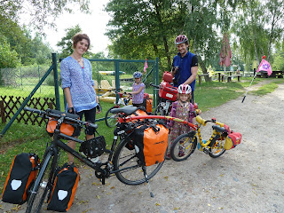 This day began very well and even ended well. The morning commenced with breakfast taken outside in the sunshine. We considered that we had been well organised this morning and had everything packed and ready for the off before we took breakfast. We were put to shame by the family in the photo. Despite having two small girls, four bikes and goodness only knows how many panniers, they were still on the road at least 15 minutes before us. Seeing whole families on bikes with camping gear has not been an unusual sight, and one about which we are enthusiastic. This particular group were typical, in that they were taking two weeks to cycle to their destination, a week in a cottage and then the train home. And the kids loved it. We wished them well and left shortly afterwards.