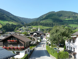 This was a beautiful day. The weather was glorious and the riding not too demanding. We followed the river for much of the time, as this constituted a significantly more reliable reference point than any of the very haphazard signposts. We were by no means the only couple confused by the green cycle signs, as we watched, with some amusement, many other cyclists who appeared equally as confused as we were. For us, the general consensus was ‘follow your nose’ and hope. This was successful up to a point. However after following green signs which seemed to visit the local farms and not much else, we resorted to the road. Winding around the hillsides maybe great fun if you are out for a day’s ride, but after fifty plus days and more than 4000 kms a more sympathetic route is required. Arriving very hot and sweaty in Piesendorf, the tourist office came up trumps and found us a bike friendly pension, which didn’t mind welcoming two sweaty and smelly cyclists. (Our experience with Tourist offices is that they are excellent at procuring accommodation but anything useful like maps or cycle route information is conspicuously absent.)