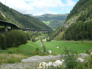 We had been reliably informed, or so we thought, that we would find an excellent cycle route to take us down the other side of the Brenner. We did find it and for ten kilometres or so it lived up to expectations. Then it set off with a mind of it’s own which seemed to focus on crossing contours, and which bore little resemblance to the direction in which we wanted to go - down! However, we were prisoners of the route as there was no way onto any useful road. Admittedly, the ups were not long, but on several occasions they were 17 %. Now, I think I am quite a dogged soul, but I could barely PUSH my load up these inclines and old Herman got heavier with each hill. Then Sherman really stuffed up. It broke away from Alan’s bike and just lay in the road (fortunately a very quiet road traffic wise BUT right outside a restaurant). It caused some amusement amongst the clientele but not a lot for us. It transpired that the link had snapped entirely so leaving no method of attaching bike and trailer. BUT, Mr. Organised had a spare if only we could remember where it was packed. Thankfully our audience lost interest when they could see the problem being so astutely solved and in less than half an hour, we were on our way again. Two hills later Alan asked, ”Where is your helmet, Mary?” Sh..t, back at the breakdown spot. Minus trailer, I went back and found it and restored faith in hill climbing ability by managing 15% without the trailer. (I have to own up at this point that my helmet was not the only this to go missing. I dropped my sunglasses while having a wee, but they will still be there – too far before I realised they were gone! That’s the second pair!)