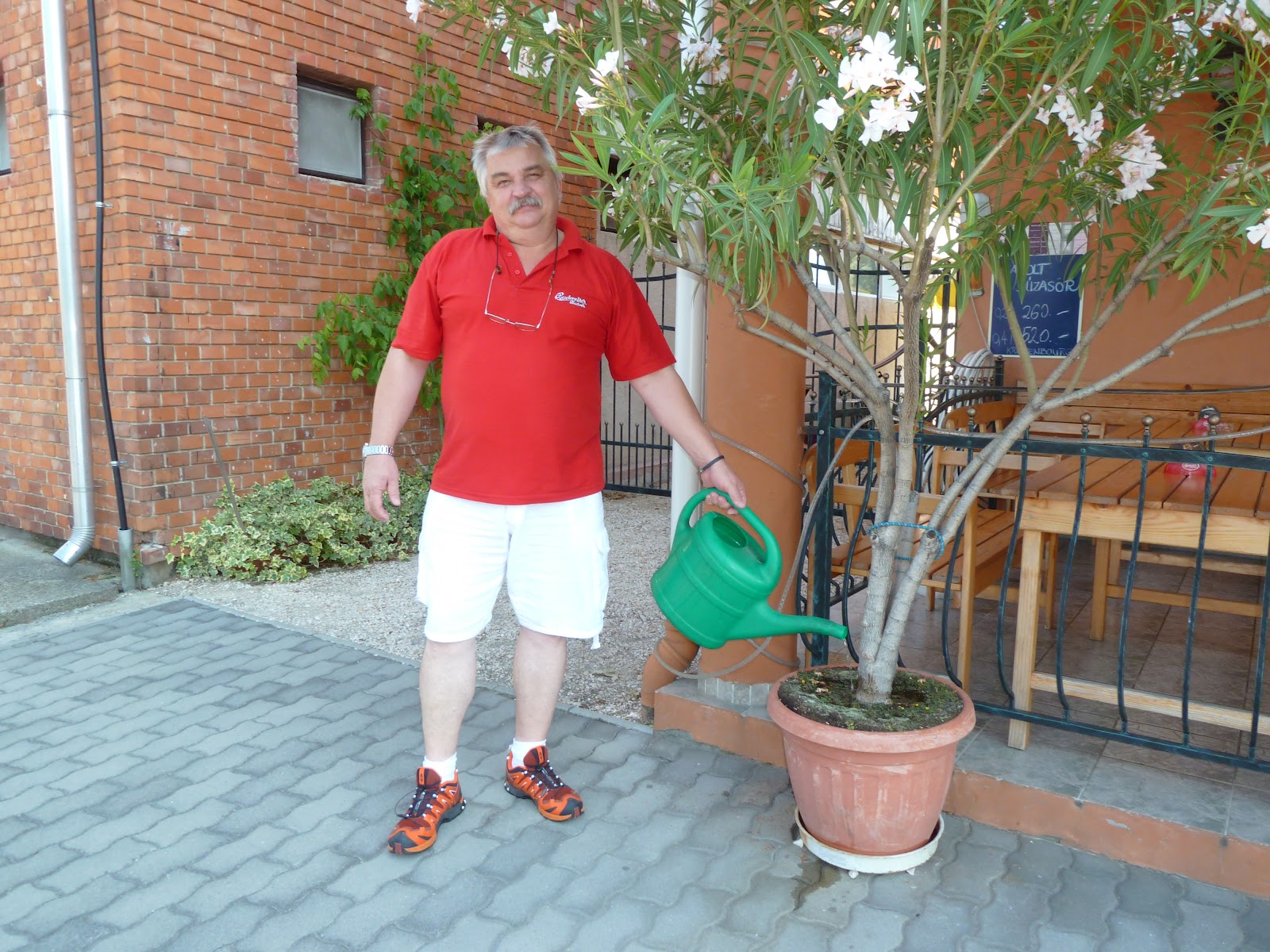 by tired cyclists. It is like a tonic. We have a photo of our host and should you