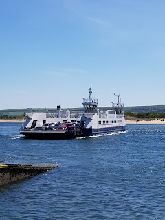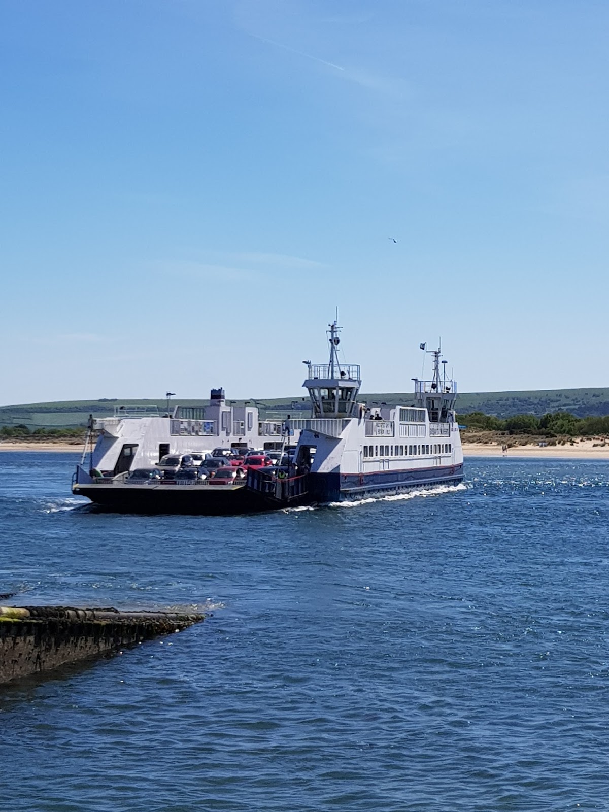 We were welcomed aboard the Studland ferry by a very amiable young man and clanked our way over the water to Poole. Here, on the quayside we lowered the tone by lounging on the floor to eat our picnic.