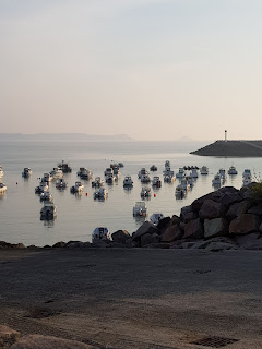 Our departure was straight uphill and I smiled all the way up giving cheery waves to all the courteous drivers. The courteous bit is a little generous but it was the start of another day of sunshine and cycling. Once out of town, the coastline was simply stunning - sweeping bays, rocky outcrops and the bluest of seas. Yes, the sun was still shining. At the bottom of today’s downs, and before the ups, we found marinas full of boats and not much water, it being low tide.