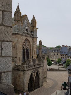 The run into Treguier was without event. (And not very hilly until we came to locating our bar for the night). Being positioned, as it is, next to the cathedral, it occupies a high point! The cathedral is magnificent and our little attic room is at the top of a spiral staircase which was built at around the same time. Very steep and narrow.