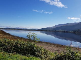 Still, all that needed to be put aside and get on with the job of riding. This was a truly lovely ride. Nearly all of it was off road and very varied and always accompanied by the beauty of the Highlands. We had to make it to the Camusnagual ferry for 10o’clock in Fort William. What a funny little boat - the bikes were strapped to the roof and the panniers had to be loaded separately! Despite its small size, it was full of walkers and cyclists (full was only about a dozen bodies). Weather still holding and, after reloading the bikes in the sunshine, we set off along the lockside - really lovely. The second ferry from Corran was altogether different - much bigger with cars but free for bikes! This well designed route continued to please and at 80 kms we were feeling cautiously elated - nearly there. THEN the final ten kms rose in a series of ups and downs to over 300 feet which doesn’t sound much but the day’s total was over 3000ft. To say we were tired would be to underestimate substantially our actual fatigue. BUT we had made it back to our campsite and our van. Group hugs, fizzy and pasta led to instant deep sleep.