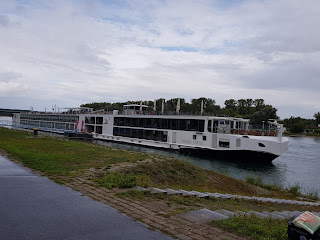 It has been a pretty gloomy day both in terms of weather (rain) and the scenery or lack of. There have been some very beautiful sights in the towns of Ludwigshafen and Worms which boast some fabulous architecture but much of our route ran next to the river.
